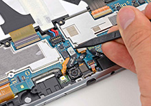 Мастер нашего сервис центра проводит работу: заменяет испорченную запчасть рабочей оригинальной комплектующей